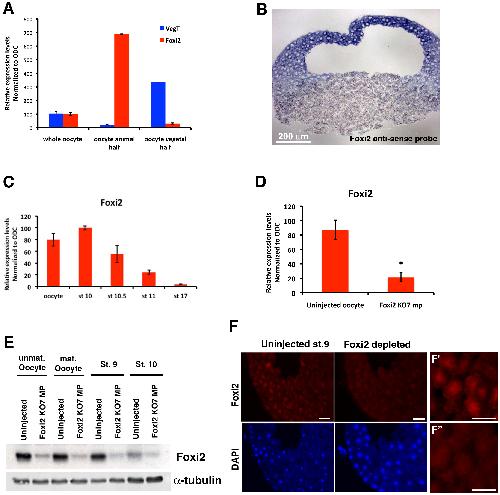 Foxi2 is an animally localized maternal mRNA in Xenopus, and an activator of the zygotic ectoderm activator Foxi1e., Cha SW, McAdams M, Kormish J, Wylie C, Kofron M., PLoS One. January 1, 2012; 7 (7): e41782. |