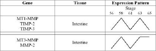 Spatial and temporal regulation of collagenases-3, -4, and stromelysin -3 implicates distinct functions in apoptosis and tissue remodeling during frog metamorphosis. , Damjanovski S , Ishizuya-Oka A , Shi YB ., Cell Res. June 1, 1999; 9 (2): 91-105.