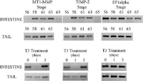 Differential regulation of three thyroid hormone-responsive matrix metalloproteinase genes implicates distinct functions during frog embryogenesis. , Damjanovski S , Puzianowska-Kuznicka M, Ishuzuya-Oka A, Shi YB ., FASEB J. March 1, 2000; 14 (3): 503-10.