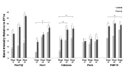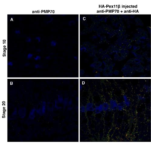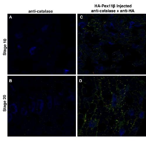 PEX11β induces peroxisomal gene expression and alters peroxisome number during early Xenopus laevis development. , Fox MA, Walsh LA, Nieuwesteeg M, Damjanovski S ., BMC Dev Biol. April 28, 2011; 11 24.