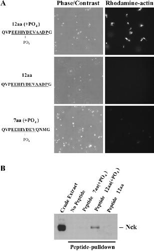 Clustering of Nck by a 12-residue Tir phosphopeptide is sufficient to trigger localized actin assembly. , Campellone KG, Rankin S , Pawson T, Kirschner MW , Tipper DJ, Leong JM., J Cell Biol. February 2, 2004; 164 (3): 407-16.