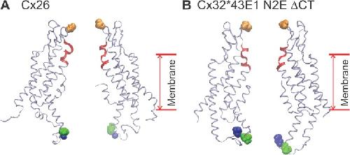 Molecular dynamics simulations of the Cx26 hemichannel: evaluation of structural models with Brownian dynamics., Kwon T, Harris AL, Rossi A, Bargiello TA., J Gen Physiol. November 1, 2011; 138 (5): 475-93. |