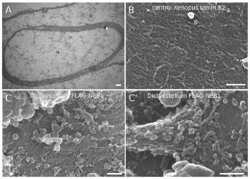 A protocol for isolating Xenopus oocyte nuclear envelope for visualization and characterization by scanning electron microscopy (SEM) or transmission electron microscopy (TEM). , Allen TD , Rutherford SA, Murray S, Sanderson HS, Gardiner F, Kiseleva E, Goldberg MW , Drummond SP., Nat Protoc. January 1, 2007; 2 (5): 1166-72.
