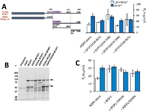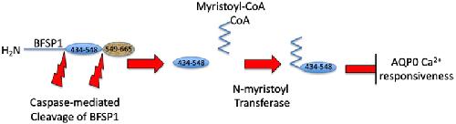 BFSP1 C-terminal domains released by post-translational processing events can alter significantly the calcium regulation of AQP0 water permeability. , Tapodi A, Clemens DM, Uwineza A, Jarrin M , Goldberg MW , Thinon E, Heal WP, Tate EW, Nemeth-Cahalan K, Vorontsova I, Hall JE, Quinlan RA., Exp Eye Res. August 1, 2019; 185 107585.