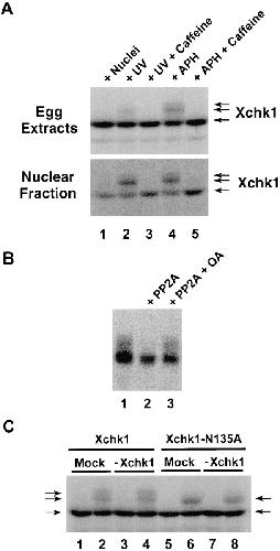 The Xenopus Chk1 protein kinase mediates a caffeine-sensitive pathway of checkpoint control in cell-free extracts. , Kumagai A , Guo Z, Emami KH, Wang SX, Dunphy WG ., J Cell Biol. September 21, 1998; 142 (6): 1559-69.