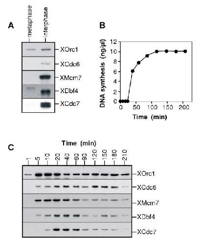 Xenopus cdc7 function is dependent on licensing but not on XORC, XCdc6, or CDK activity and is required for XCdc45 loading. , Jares P, Blow JJ ., Genes Dev. June 15, 2000; 14 (12): 1528-40.