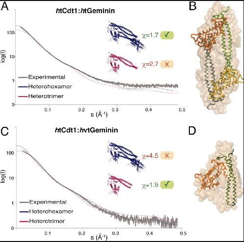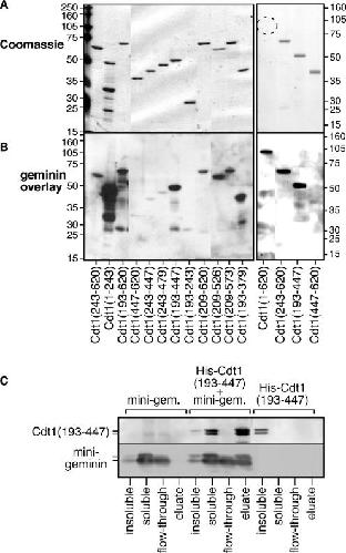 Quaternary structure of the human Cdt1- Geminin complex regulates DNA replication licensing. , De Marco V, Gillespie PJ, Li A, Karantzelis N, Christodoulou E, Klompmaker R, van Gerwen S, Fish A, Petoukhov MV, Iliou MS, Lygerou Z, Medema RH, Blow JJ , Svergun DI, Taraviras S, Perrakis A., Proc Natl Acad Sci U S A. November 24, 2009; 106 (47): 19807-12.