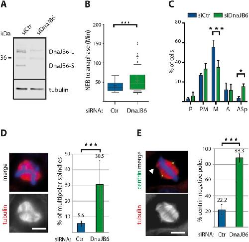 DnaJB6 is a RanGTP-regulated protein required for microtubule organization during mitosis. , Rosas-Salvans M, Scrofani J, Modol A, Vernos I ., J Cell Sci. June 3, 2019; 132 (11):