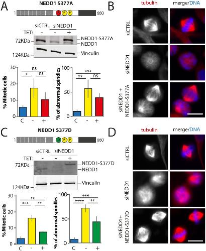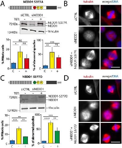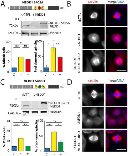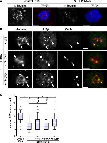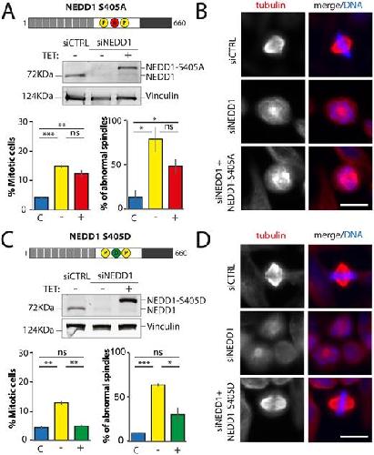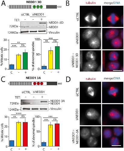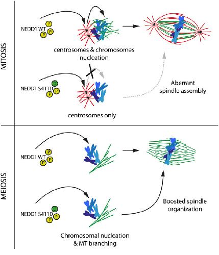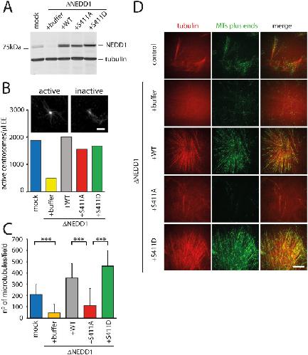 NEDD1-S411 phosphorylation plays a critical function in the coordination of microtubule nucleation during mitosis. , Timón Pérez K, Scrofani J, Vernos I ., Biol Open. November 1, 2022; 11 (11):