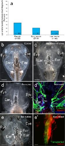 Transplantation of Xenopus laevis ears reveals the ability to form afferent and efferent connections with the spinal cord. , Elliott KL, Fritzsch B ., Int J Dev Biol. January 1, 2010; 54 (10): 1443-51.