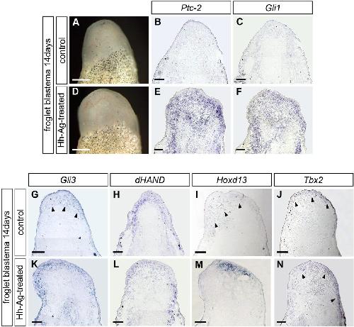 Effects of activation of hedgehog signaling on patterning, growth, and differentiation in Xenopus froglet limb regeneration. , Yakushiji N, Suzuki M , Satoh A , Ide H , Tamura K ., Dev Dyn. August 1, 2009; 238 (8): 1887-96.
