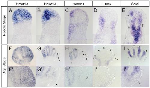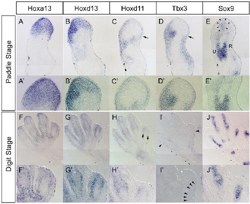 Analysis of hoxa11 and hoxa13 expression during patternless limb regeneration in Xenopus. , Ohgo S, Itoh A, Suzuki M , Satoh A , Yokoyama H , Tamura K ., Dev Biol. February 15, 2010; 338 (2): 148-57.