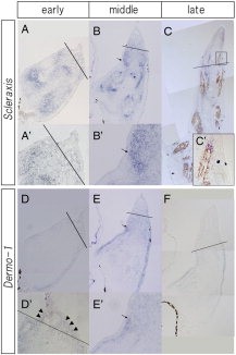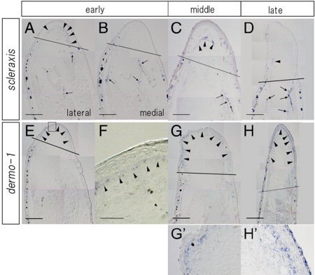 Analysis of scleraxis and dermo-1 genes in a regenerating limb of Xenopus laevis. , Satoh A , Nakada Y, Suzuki M , Tamura K , Ide H ., Dev Dyn. April 1, 2006; 235 (4): 1065-73.
