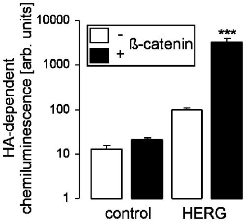 Stimulation of HERG channel activity by β-catenin., Munoz C, Saxena A, Pakladok T, Bogatikov E, Wilmes J, Seebohm G, Föller M, Lang F., PLoS One. January 1, 2012; 7 (8): e43353. |