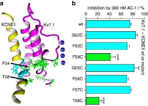 KCNE1 induces fenestration in the Kv7.1/KCNE1 channel complex that allows for highly specific pharmacological targeting., Wrobel E, Rothenberg I, Krisp C, Hundt F, Fraenzel B, Eckey K, Linders JT, Gallacher DJ, Towart R, Pott L, Pusch M, Yang T, Roden DM, Kurata HT, Schulze-Bahr E, Strutz-Seebohm N, Wolters D, Seebohm G., Nat Commun. October 12, 2016; 7 12795. |
