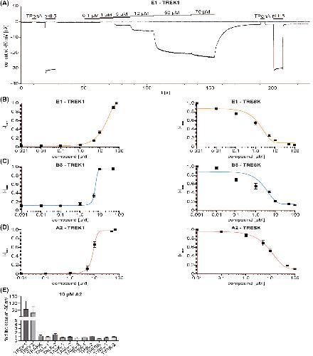 Validation of TREK1 ion channel activators as an immunomodulatory and neuroprotective strategy in neuroinflammation., Schroeter CB, Nelke C, Schewe M, Spohler L, Herrmann AM, Müntefering T, Huntemann N, Kuzikov M, Gribbon P, Albrecht S, Bock S, Hundehege P, Neelsen LC, Baukrowitz T, Seebohm G, Wünsch B, Bittner S, Ruck T, Budde T, Meuth SG., Biol Chem. March 28, 2023; 404 (4): 355-375. |