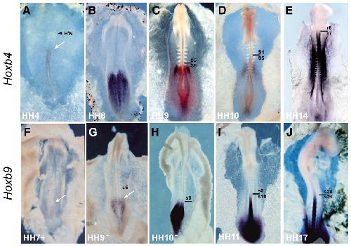 Initiating Hox gene expression: in the early chick neural tube differential sensitivity to FGF and RA signaling subdivides the HoxB genes in two distinct groups. , Bel-Vialar S, Itasaki N, Krumlauf R ., Development. November 1, 2002; 129 (22): 5103-15.