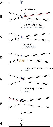 XPF-ERCC1 acts in Unhooking DNA interstrand crosslinks in cooperation with FANCD2 and FANCP/SLX4., Klein Douwel D, Boonen RA, Long DT, Szypowska AA, Räschle M, Walter JC, Knipscheer P., Mol Cell. May 8, 2014; 54 (3): 460-71. |