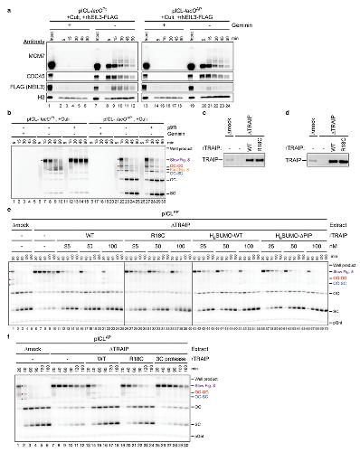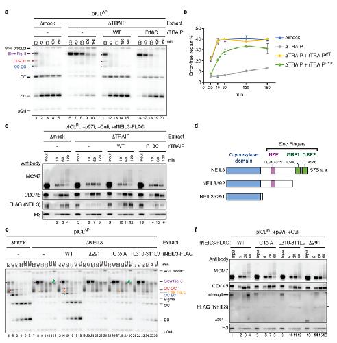 TRAIP is a master regulator of DNA interstrand crosslink repair., Wu RA, Semlow DR, Kamimae-Lanning AN, Kochenova OV, Chistol G, Hodskinson MR, Amunugama R, Sparks JL, Wang M, Deng L, Mimoso CA, Low E, Patel KJ, Walter JC., Nature. March 1, 2019; 567 (7747): 267-272. |