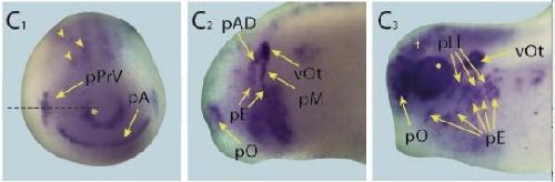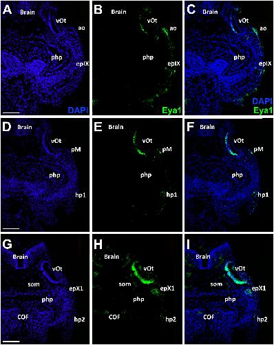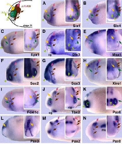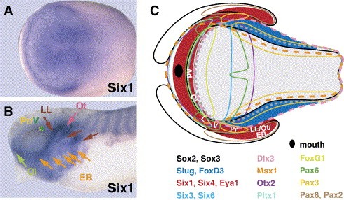 How old genes make a new head: redeployment of Six and Eya genes during the evolution of vertebrate cranial placodes. , Schlosser G ., Integr Comp Biol. September 1, 2007; 47 (3): 343-59.