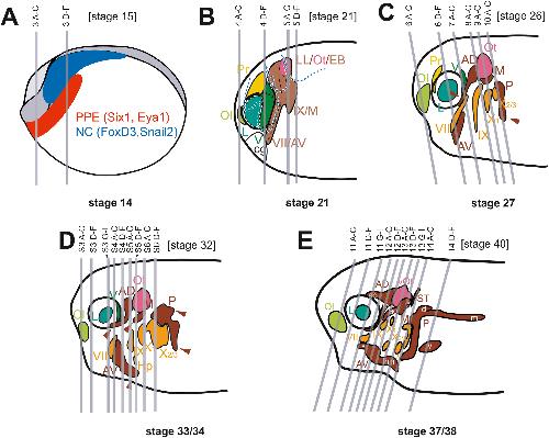 Early embryonic specification of vertebrate cranial placodes. , Schlosser G ., Wiley Interdiscip Rev Dev Biol. January 1, 2014; 3 (5): 349-63.