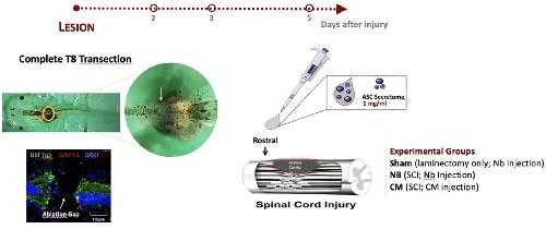 Adipose tissue derived stem cell secretome induces motor and histological gains after complete spinal cord injury in Xenopus laevis and mice. , Assunção-Silva RC, Pinho A, Cibrão JR, Pereira IM, Monteiro S, Silva NA, Campos J, Rebelo AL, Schlosser G , Pinto L, Pandit A, Salgado AJ., J Tissue Eng. January 1, 2024; 15 20417314231203824.