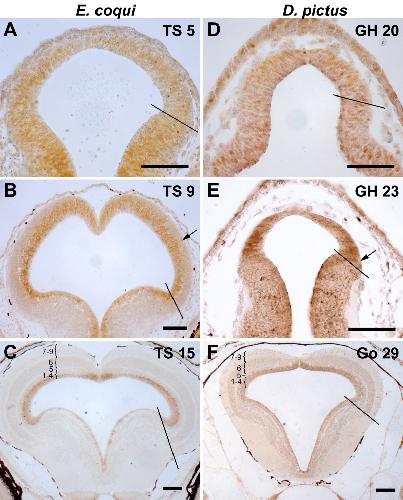 Mosaic evolution of neural development in anurans: acceleration of spinal cord development in the direct developing frog Eleutherodactylus coqui. , Schlosser G ., Anat Embryol (Berl). February 1, 2003; 206 (3): 215-27.