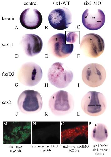 Six1 promotes a placodal fate within the lateral neurogenic ectoderm by functioning as both a transcriptional activator and repressor. , Brugmann SA , Pandur PD , Kenyon KL , Pignoni F, Moody SA ., Development. December 1, 2004; 131 (23): 5871-81.