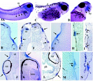 Xenopus Six1 gene is expressed in neurogenic cranial placodes and maintained in the differentiating lateral lines. , Pandur PD , Moody SA ., Mech Dev. September 1, 2000; 96 (2): 253-7.