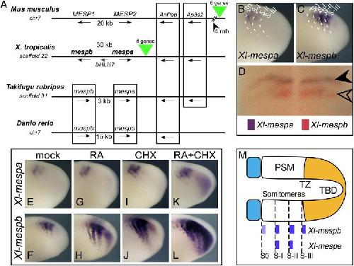 Retinoic acid regulation of the Mesp-Ripply feedback loop during vertebrate segmental patterning. , Moreno TA, Jappelli R, Izpisúa Belmonte JC , Kintner C ., Dev Biol. March 15, 2008; 315 (2): 317-30.