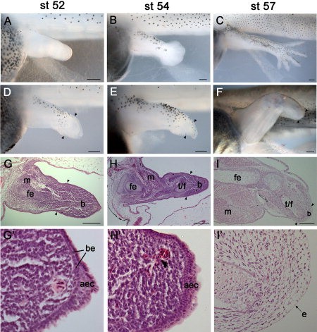 Mesenchyme with fgf-10 expression is responsible for regenerative capacity in Xenopus limb buds. , Yokoyama H , Yonei-Tamura S, Endo T, Izpisúa Belmonte JC , Tamura K , Ide H ., Dev Biol. March 1, 2000; 219 (1): 18-29.