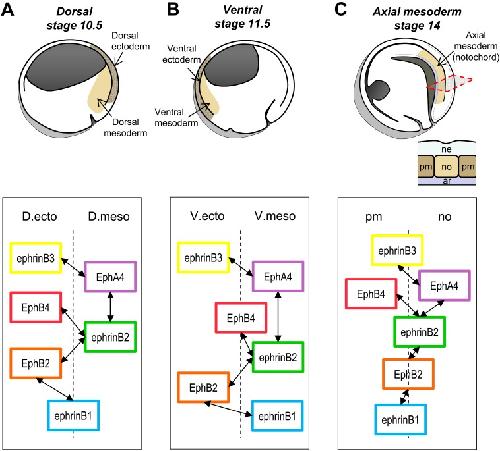Variable combinations of specific ephrin ligand/Eph receptor pairs control embryonic tissue separation. , Rohani N, Parmeggiani A, Winklbauer R , Fagotto F ., PLoS Biol. September 23, 2014; 12 (9): e1001955.