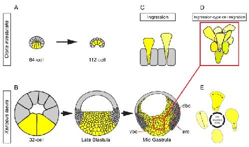 Ingression-type cell migration drives vegetal endoderm internalisation in the Xenopus gastrula. , Wen JW, Winklbauer R ., Elife. August 10, 2017; 6