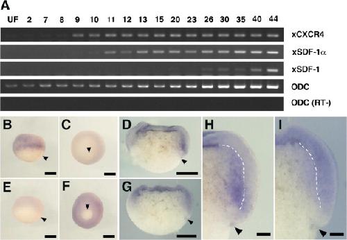 SDF-1 alpha regulates mesendodermal cell migration during frog gastrulation. , Fukui A , Goto T , Kitamoto J, Homma M, Asashima M ., Biochem Biophys Res Commun. March 9, 2007; 354 (2): 472-7.