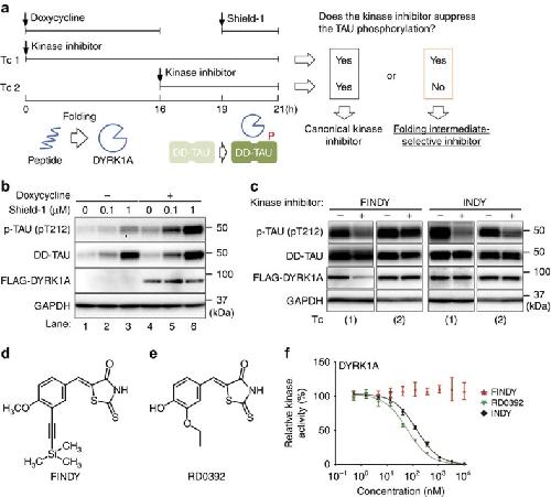 Selective inhibition of the kinase DYRK1A by targeting its folding process. , Kii I, Sumida Y, Goto T , Sonamoto R, Okuno Y, Yoshida S, Kato-Sumida T, Koike Y, Abe M, Nonaka Y, Ikura T, Ito N, Shibuya H , Hosoya T, Hagiwara M., Nat Commun. April 22, 2016; 7 11391.