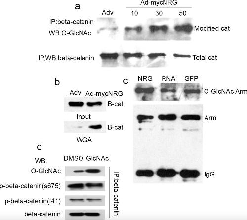 NRAGE induces β-catenin/Arm O-GlcNAcylation and negatively regulates Wnt signaling., Chen Y, Jin L, Xue B, Jin D, Sun F, Wen C., Biochem Biophys Res Commun. May 27, 2017; 487 (2): 433-437. |