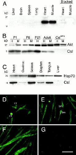 The small muscle-specific protein Csl modifies cell shape and promotes myocyte fusion in an insulin-like growth factor 1-dependent manner. , Palmer S, Groves N, Schindeler A, Yeoh T, Biben C, Wang CC , Sparrow DB , Barnett L, Jenkins NA, Copeland NG, Koentgen F, Mohun T, Harvey RP ., J Cell Biol. May 28, 2001; 153 (5): 985-98.