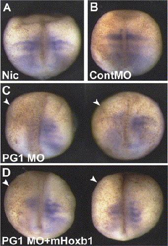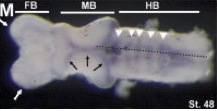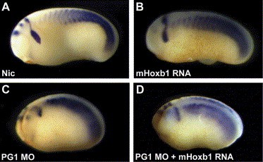 Knockdown of the complete Hox paralogous group 1 leads to dramatic hindbrain and neural crest defects., McNulty CL, Peres JN, Bardine N, van den Akker WM, Durston AJ., Development. June 1, 2005; 132 (12): 2861-71. |