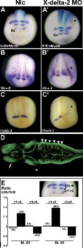 Interaction between X-Delta-2 and Hox genes regulates segmentation and patterning of the anteroposterior axis., Peres JN, McNulty CL, Durston AJ., Mech Dev. April 1, 2006; 123 (4): 321-33. |