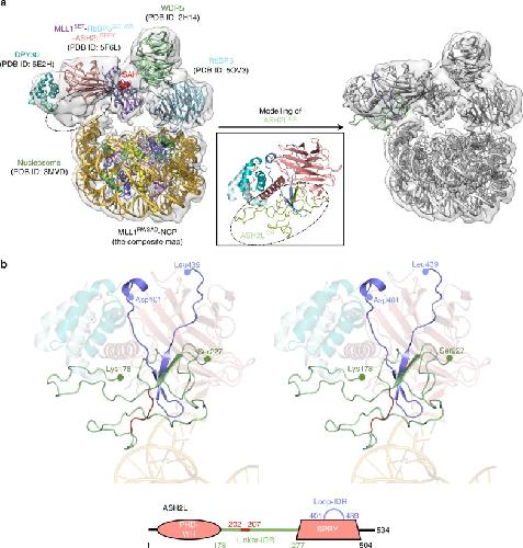 Cryo-EM structure of the human MLL1 core complex bound to the nucleosome. , Park SH, Ayoub A, Lee YT , Xu J, Kim H , Zheng W, Zhang B, Sha L, An S, Zhang Y , Cianfrocco MA, Su M, Dou Y, Cho US., Nat Commun. December 5, 2019; 10 (1): 5540.