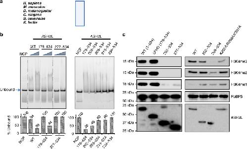 Structural Basis of MRG15-Mediated Activation of the ASH1L Histone Methyltransferase by Releasing an Autoinhibitory Loop. , Lee Y , Yoon E, Cho S, Schmähling S, Müller J, Song JJ., Structure. May 7, 2019; 27 (5): 846-852.e3.