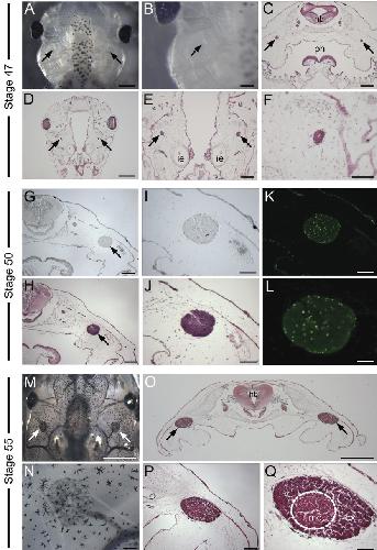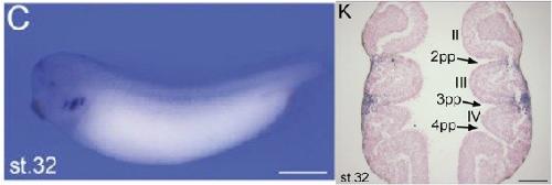 Developmental expression of Pitx2c in Xenopus trigeminal and profundal placodes. , Jeong YH, Park BK, Saint-Jeannet JP , Lee YH ., Int J Dev Biol. January 1, 2014; 58 (9): 701-4.