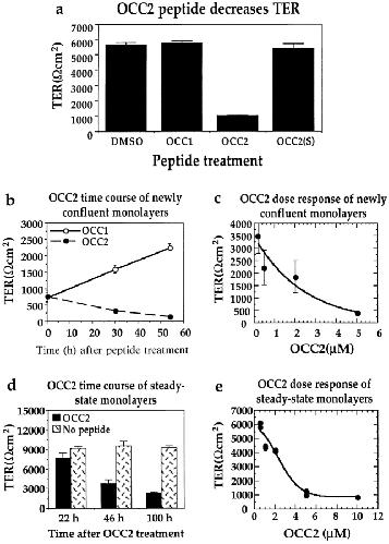 A synthetic peptide corresponding to the extracellular domain of occludin perturbs the tight junction permeability barrier. , Wong V, Gumbiner BM ., J Cell Biol. January 27, 1997; 136 (2): 399-409.