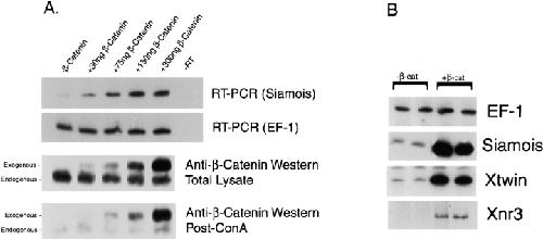 Beta-catenin directly induces expression of the Siamois gene, and can initiate signaling indirectly via a membrane-tethered form. , Nelson RW , Gumbiner BM ., Ann N Y Acad Sci. October 23, 1998; 857 86-98.
