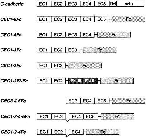 Lateral dimerization is required for the homophilic binding activity of C-cadherin. , Brieher WM, Yap AS, Gumbiner BM ., J Cell Biol. October 1, 1996; 135 (2): 487-96.