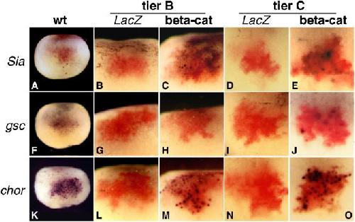 Induction of the primary dorsalizing center in Xenopus by the Wnt/GSK/beta-catenin signaling pathway, but not by Vg1, Activin or Noggin. , Fagotto F , Guger K, Gumbiner BM ., Development. January 1, 1997; 124 (2): 453-60.