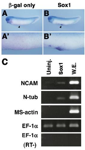 Expression of Sox1 during Xenopus early embryogenesis. , Nitta KR, Takahashi S , Haramoto Y, Fukuda M, Onuma Y , Asashima M ., Biochem Biophys Res Commun. December 8, 2006; 351 (1): 287-93.