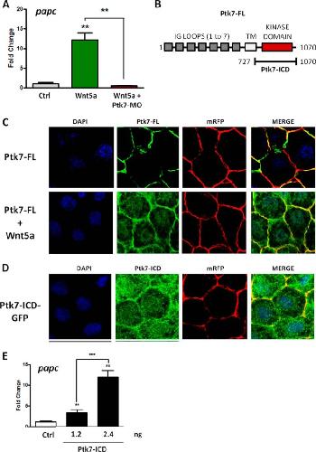 The PTK7 and ROR2 Protein Receptors Interact in the Vertebrate WNT/Planar Cell Polarity (PCP) Pathway. , Martinez S, Scerbo P , Giordano M, Daulat AM, Lhoumeau AC, Thomé V, Kodjabachian L , Borg JP ., J Biol Chem. December 18, 2015; 290 (51): 30562-72.