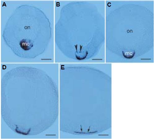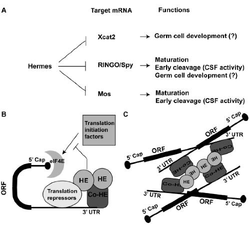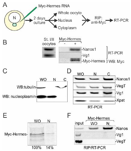 Hermes RNA-binding protein targets RNAs-encoding proteins involved in meiotic maturation, early cleavage, and germline development. , Song HW, Cauffman K, Chan AP, Zhou Y, King ML , Etkin LD , Kloc M ., Differentiation. July 1, 2007; 75 (6): 519-28.