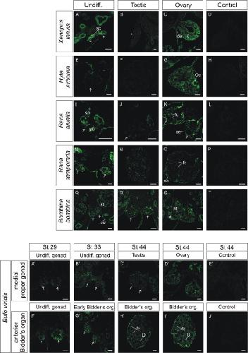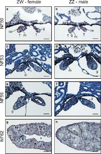 Development of Xenopus laevis bipotential gonads into testis or ovary is driven by sex-specific cell-cell interactions, proliferation rate, cell migration and deposition of extracellular matrix. , Piprek RP, Kloc M , Tassan JP , Kubiak JZ ., Dev Biol. December 15, 2017; 432 (2): 298-310.